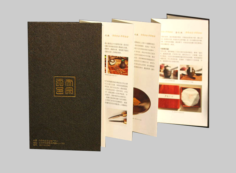 工藝:全部四色加金印刷,封面燙紅、燙金,壓線,折頁(yè)。